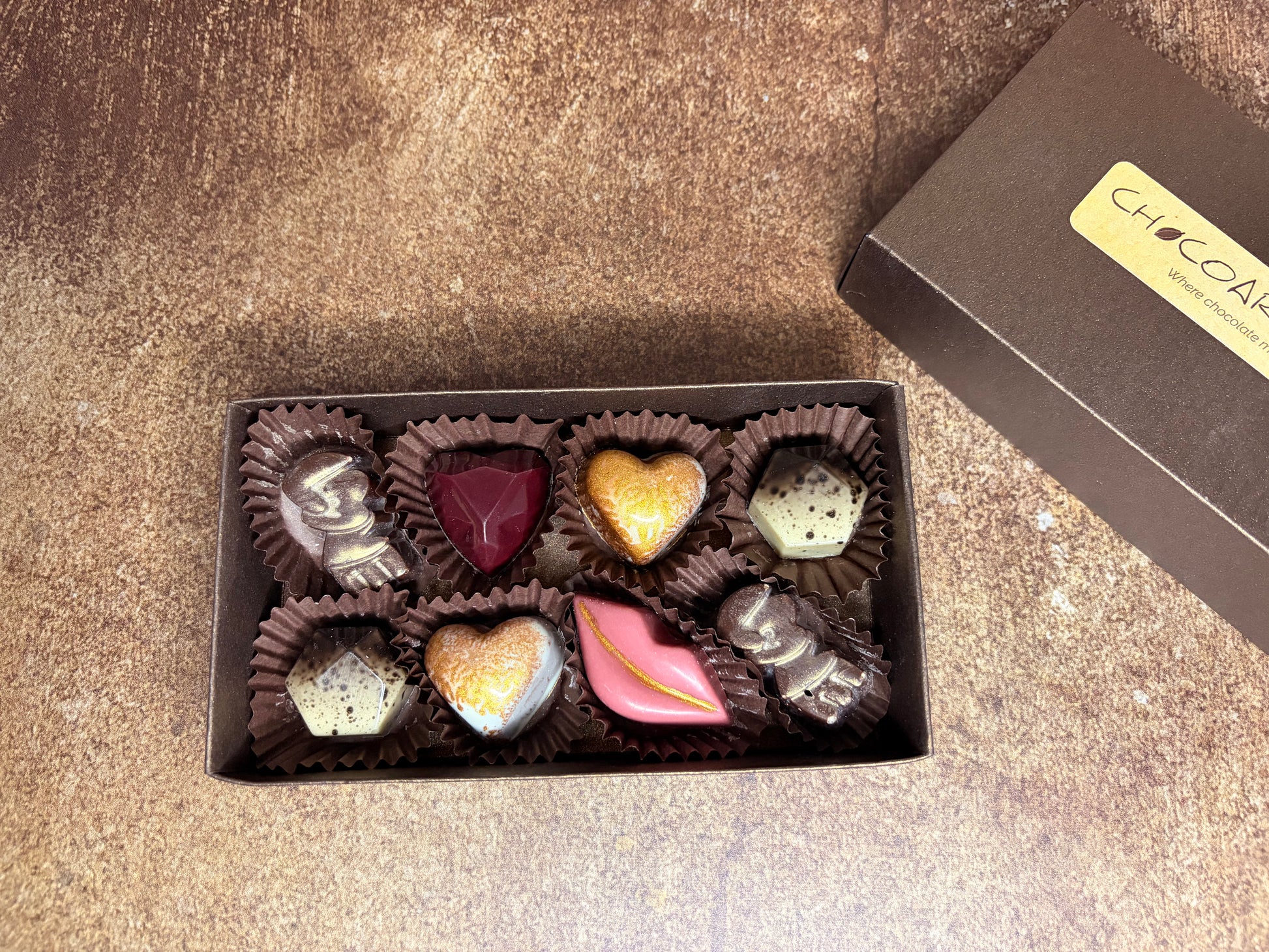 Кутия с 8 ръчно изработени шоколадови бонбона: