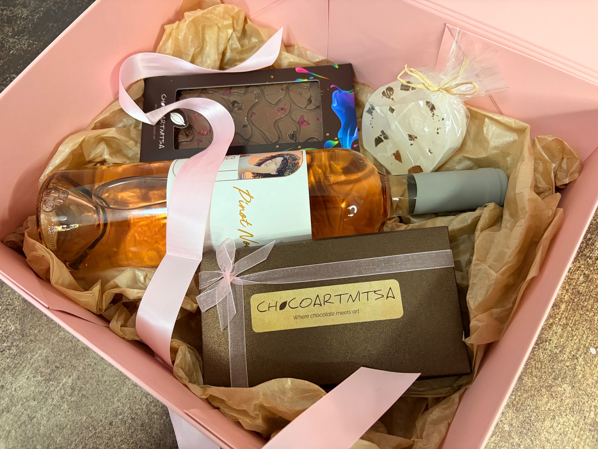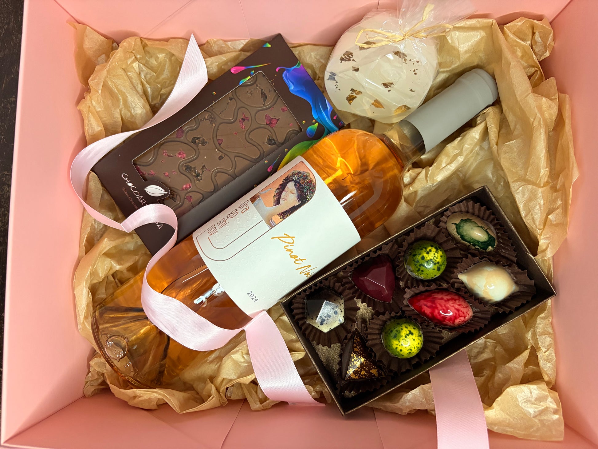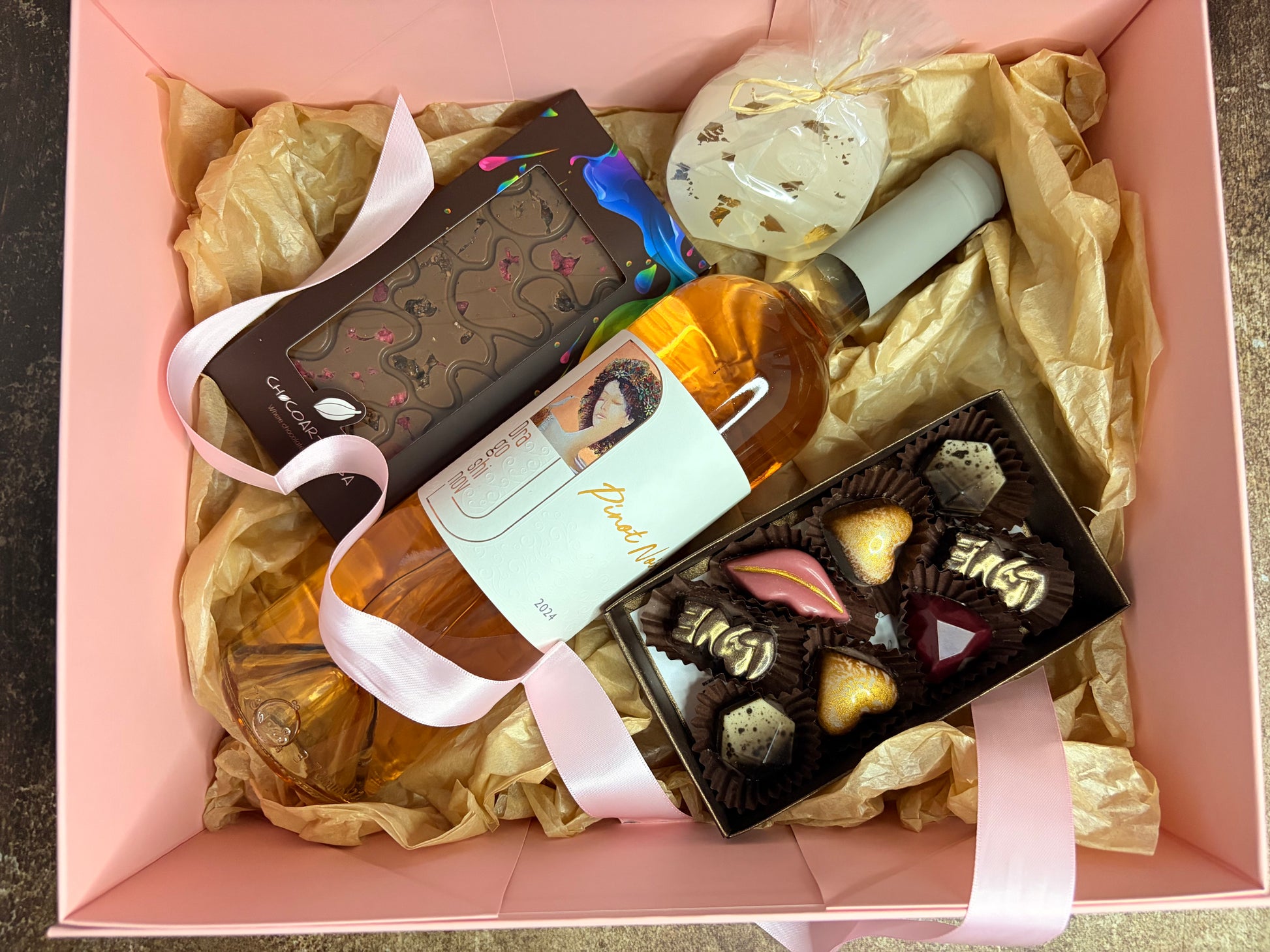 Луксозна подаръчна кутия с Розе, ръчно изработен шоколад, бонбони и свещ
